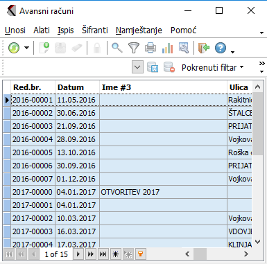 Izaberite tu opciju i na zaslonu će te dobiti prikaz avansnih računa. Tu unosite i pregledate sve kupce, koji su platili određeni predujam. Možete ispisati potvrde i potom ih poslati kupcima. Program Vam omogućava i prijenos avansnog računa na otpremnice.