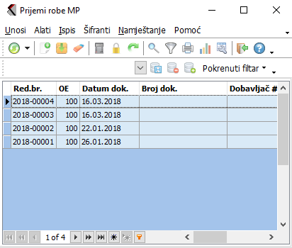 Izaberite u meniju tu opciju i na zaslonu će te dobiti prikaz prijema robe MP. Tu postoji više načina izrade prijema robe MP: