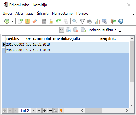 Izaberite u meniju tu opciju i na zaslonu će te dobiti prikaz prijema MP robe komisija. U tom modulu izrađujete samostalne prijeme.