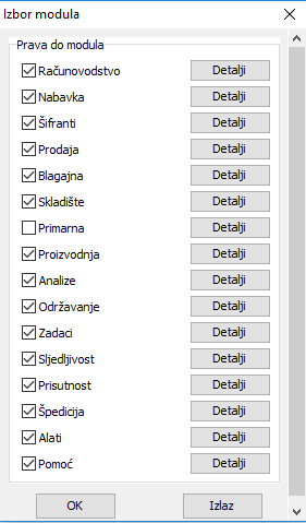 - sa F8 nastavljamo korisnicima pristup poslovanju (korisnike moramo prenijeti s desne strane med odabrane korisnike na lijevu stranu).