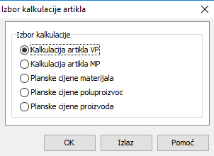 | • | kalkulacija artikla VP (artiklu možete dodijeliti cijenu, gdje vam je program automatski preračuna) |